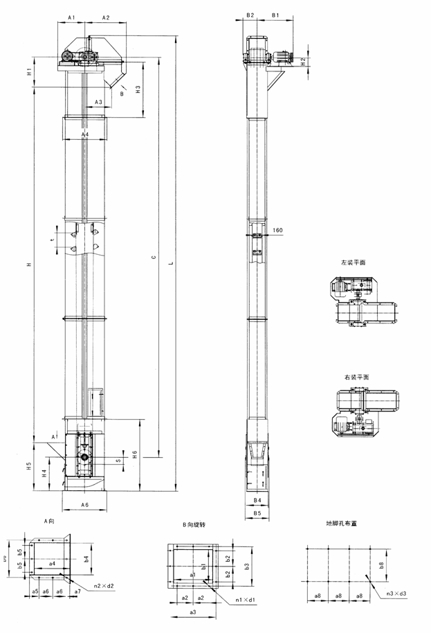 四、TD型斗式提升機(jī)的外形及安裝尺寸: