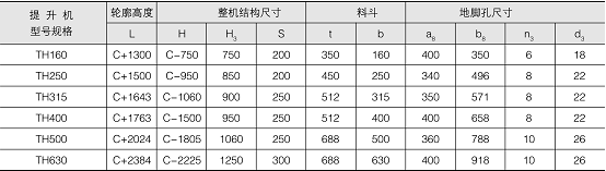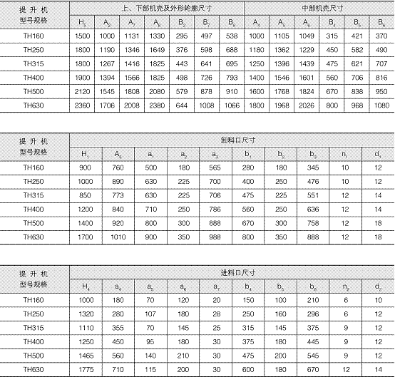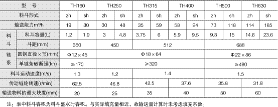 本提升機(jī)代號為TH,即圓環(huán)鏈斗式提升機(jī),產(chǎn)品規(guī)格以斗寬表示。