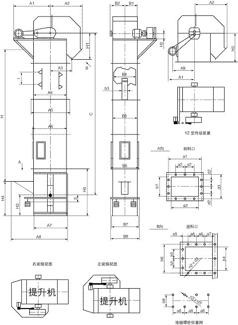 TH型斗式提升機(jī)結(jié)構(gòu)示意圖