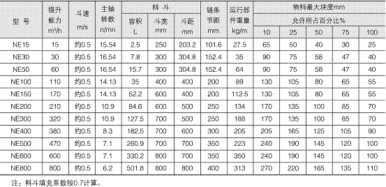 NE系列斗式提升機(jī)技術(shù)參數(shù):