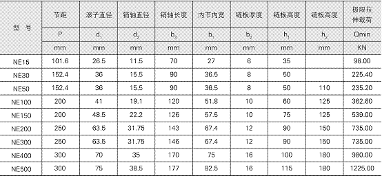 NE型斗式提升機(jī)鏈技術(shù)參數(shù):