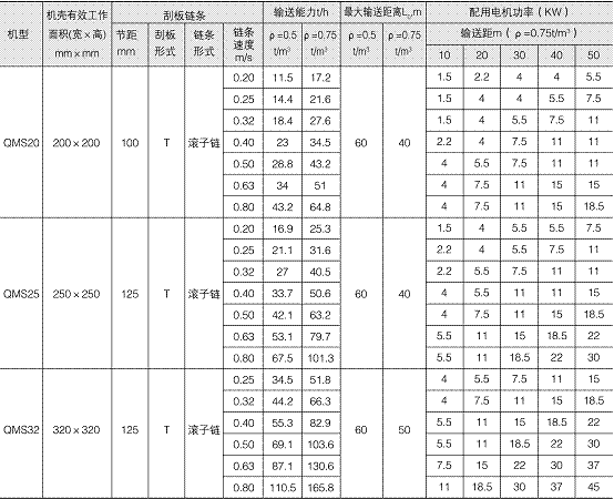 由于糧食的可輸送性優(yōu)良,糧食專用型埋刮板輸送機(jī)的刮板鏈條運(yùn)行速度在普通機(jī)型的基礎(chǔ)上可大幅度提高。普通機(jī)型的最高鏈速為0.32m/s,糧食專用型的最高鏈速可達(dá)1.05m/s。當(dāng)鏈條運(yùn)行速度大于0.5m/s時,上、下導(dǎo)軌采用耐磨塑料,既能提高使用壽命,又可降低設(shè)備的運(yùn)行噪聲。此外,糧食專用型與普通機(jī)型相比,前者的殼體厚度相對較小,從而可減輕整機(jī)重量,節(jié)約設(shè)備投資。
