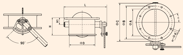 注: 1、蝶閥的高度及法蘭尺寸也可根據(jù)用戶要求制作。