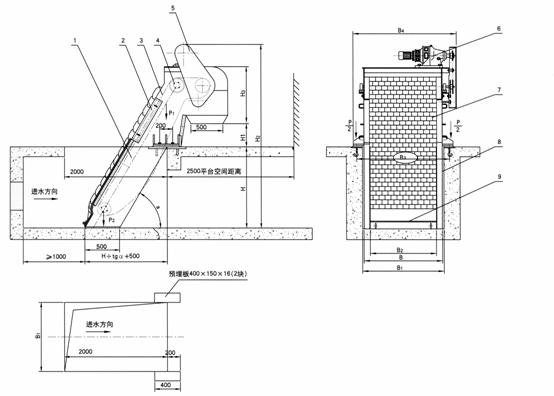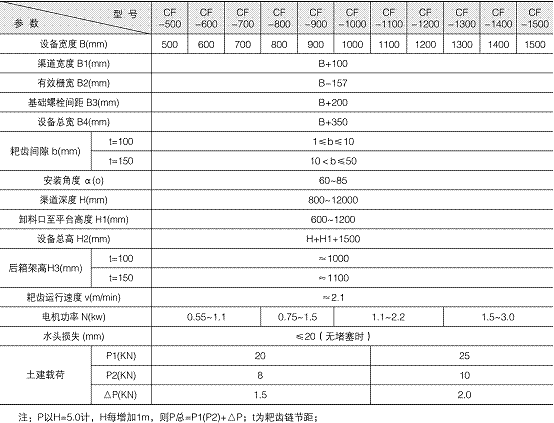 3、耙齒規(guī)格兩種,粗格柵耙齒節(jié)距t=150mm,細格柵耙齒節(jié)距t=100mm;