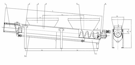 YWLS 型壓榨式螺旋輸送機(jī)適用于城鎮(zhèn)污水處理廠,住宅小區(qū)污水預(yù)處理裝置、市政雨/污水泵站及自來水廠等的柵渣處理,它主要與格柵等設(shè)備配套使用,將柵渣進(jìn)行輸送、壓榨及脫水。